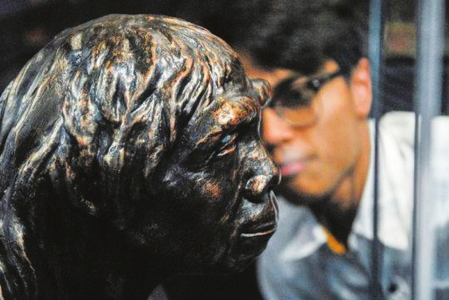 2010年5月13日,在上海世博会非洲联合馆埃塞俄比亚展区,记者在拍摄古人类骨骼
