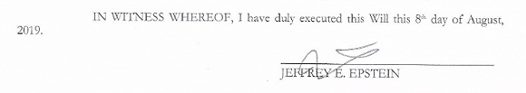《纽约邮报》19日获取的一份法庭文件显示,这份遗嘱的落款日期是8月8日,也就是他被发现死亡的前两天。该文件于19日被提交至维尔京群岛高级法院。爱泼斯坦的公司正是在这个美国海外领地注册的。文件中提到,爱泼斯坦的总资产超过5.77亿美元,较他之前换取保释时申报的多了1800万美元。