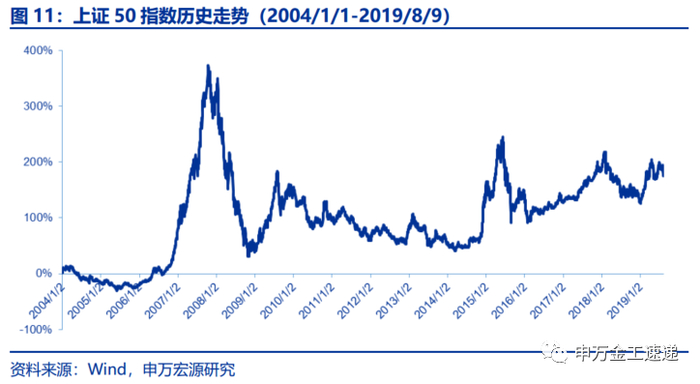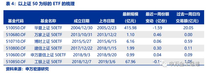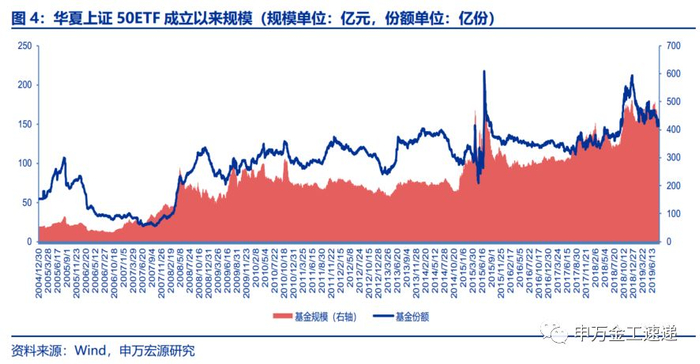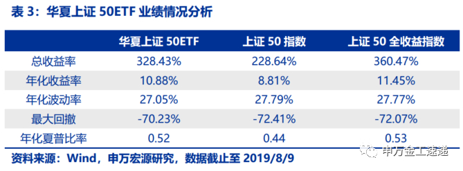 本篇报告将着重讨论华夏上证50ETF的投资价值。华夏上证50ETF成立于2004年12月30日,是国内首只ETF。截止至2019年8月9日,产品最新规模为416亿元,是目前国内规模最大的ETF之一。此外,华夏上证50ETF既是融资融券标的,也是国内目前唯一的ETF期权--50ETF期权的标的,上证50指数本身还有对应的上证50股指期货,华夏上证50ETF与相关衍生品亦有较多策略操作空间。该只产品见证着国内ETF市场的发展,因而我们以华夏上证50ETF作为本系列报告的开篇。