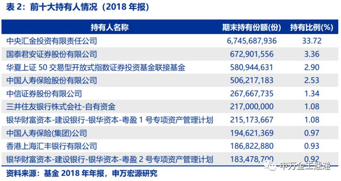华夏上证50ETF以机构投资者持有为主。机构投资者占比历史平均值高达65%。根据2018年年报数据,机构投资者持有比例为68.64%,个人投资者持有比例为31.36%。其前十大持有人均为机构投资者,中央汇金为第一大持有人,持有比例为33.72%。