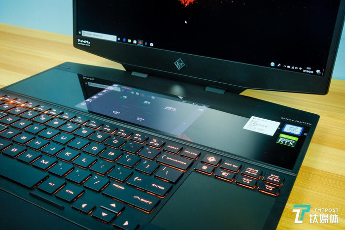 不是 B&O 调教的音效——而是那块异常醒目的 6 英寸副屏幕。1920×1080 的分辨率,再加上可触摸的设计,它能赋予游戏各种可能性:吃鸡想要“八倍镜”?LOL 想要小地图?只要打开 OMEN Command Center,将对应的屏幕部分映射上去,一切皆有可能。比如说当前设备的运行状态,再缩小一个网页下去,边打游戏,边看直播,想怎么玩,就怎么玩。