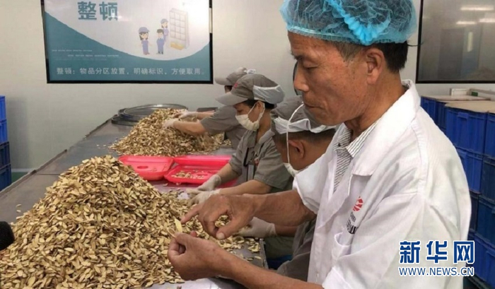 配方颗粒前处理,员工在净选枳壳。新华网发