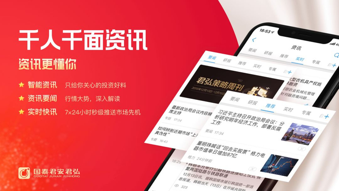 君弘APP的资讯功能立足于以用户为中心,真正做到更懂用户,以更快的信息推送、更深入的新闻解读与更懂用户的智能资讯推送广受投资者青睐。