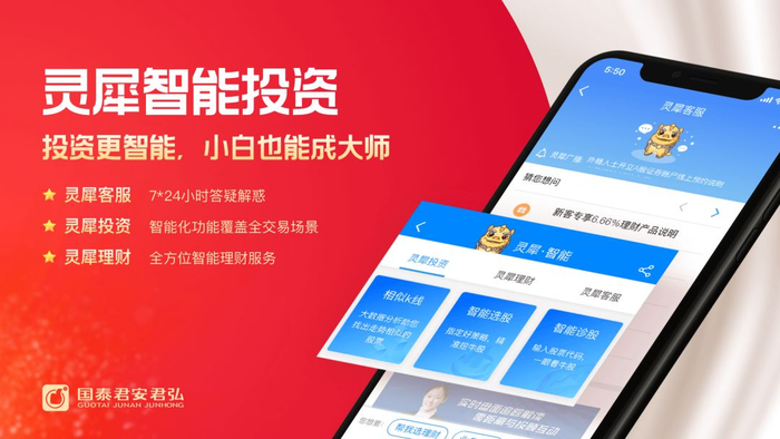 君弘灵犀作为国泰君安已正式发布近两年的智能化线上服务体系,集“灵犀客服、灵犀投资、灵犀理财”三位一体,内涵30多种智能化工具,全场景辅助用户投资,陪伴用户投资的每一步。