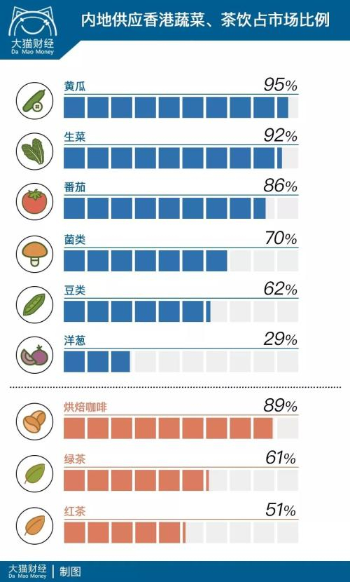 现在香港市场上,鲜活牛羊供应量的近100%、活猪供应量的99.8%、蔬菜的60%,都来自内地。淡水鱼、家禽也基本由内地供给。那香港总共为此花了多少钱呢?