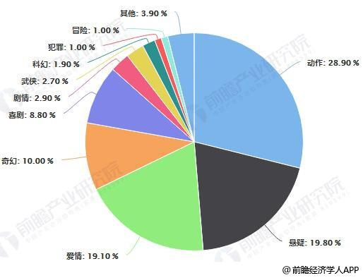 从播放量来看,2018年,新上线的网络电影中动作片的播放量最高,占比高达28.9%;同时,悬疑、爱情、奇幻和喜剧片的播放量也相对较高,合计播放量占比高达57.7%。
