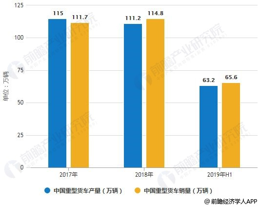 2017-2019年H1中国重型货车(卡车)产销量统计情况