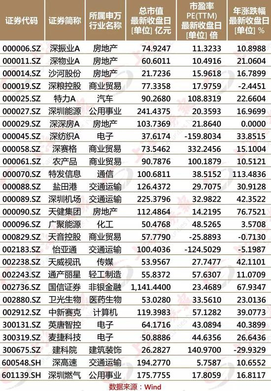 而盐田港、深圳机场、深圳能源、深圳燃气、深粮控股、农产品、天健集团、深振业A等深圳市国资委直管企业均已整体上市。