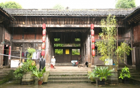 第三进房屋就是后院了,后院院坝最宽敞,青石地板铺就,后院正中为堂屋,供奉龙氏先祖。