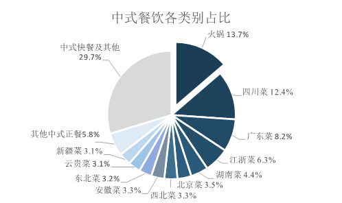 2017年,中式餐饮总收入31920亿元,火锅占中式餐饮比重达13.7%,市场份额居于各细分中式餐饮类型之首。
