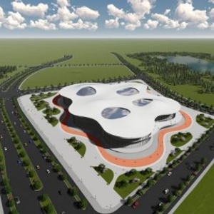 极限运动馆的设计构思来源于对碗池滑板运动流畅的曲线形态的提取,同时融合了南京市花——梅花,形成了流畅灵动的屋盖形态。屋盖与采光天窗相结合,将自然天光引入训练基地,满足运动员的训练、比赛需求,营造良好的室内氛围。