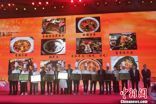 图为第二届青海地方特色小吃大赛暨西宁美食节闭幕式现场颁发“青海十大名菜”“青海十大名小吃”最佳制作单位奖项。 鲁丹阳 摄