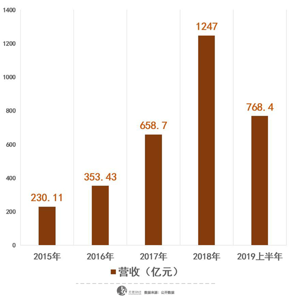 ▲2015-2019年上半年,融创营收概况。