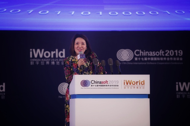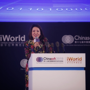华为荣耀首席战略和品牌发展官张晓云在成都参加软洽会高峰会议。