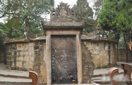 那块立于康熙四十八年的墓碑,乃四川巡抚能泰所立,两百多年过去了,碑已经被南来北往的香火熏得黝黑。