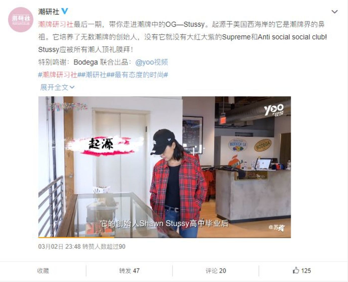 2018年,前《时尚芭莎》总编辑苏芒创办了潮流短视频品牌「潮研社」,在美国潮流文化发源地洛杉矶驻扎了一个10人小分队。在人人都想从品牌故事做突破的时代,「潮研社」希望主打短视频,用影像来呈现LA的一手潮流资讯。《潮牌研习社 第一季》里,苏芒探访了Stussy、Martine Rose等潮牌,比起图文和资料整理,潮研社可以通过视频,更直接地呈现来自LA的资讯。