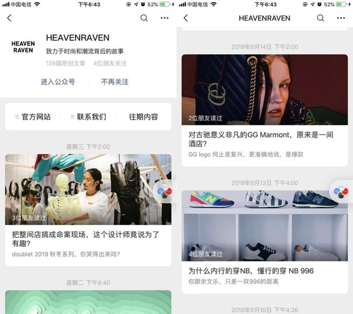 开号半年多,HR已经实现了一周六更,由乌鸦和一名台湾编辑完成,但对于来到大陆发展这件事,他依然觉得“太晚了”,没有资源积累,错过了公众号的红利期,也错过了内地潮流文化发展的红利期。