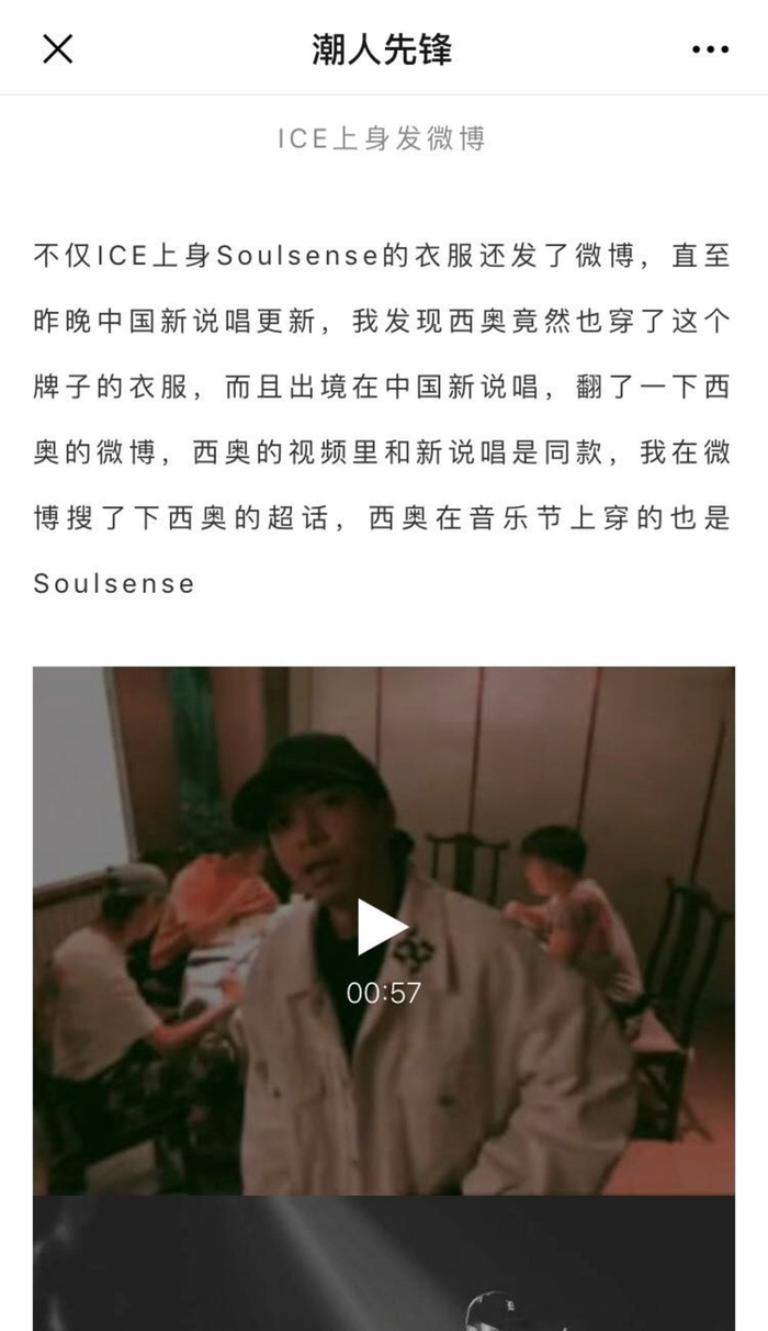 以潮流文化类公众号「潮人先锋」七月发布的文章《一夜间席卷说唱圈的SST恤,是个啥品牌》为例,文章插入了潮人西奥穿着SST恤在音乐节说唱rap的视频,既强化了SS(Soulsense)的潮牌形象,同时该文章通过视频将T恤与潮人、rap等元素结合,使得SST恤更具吸引力。