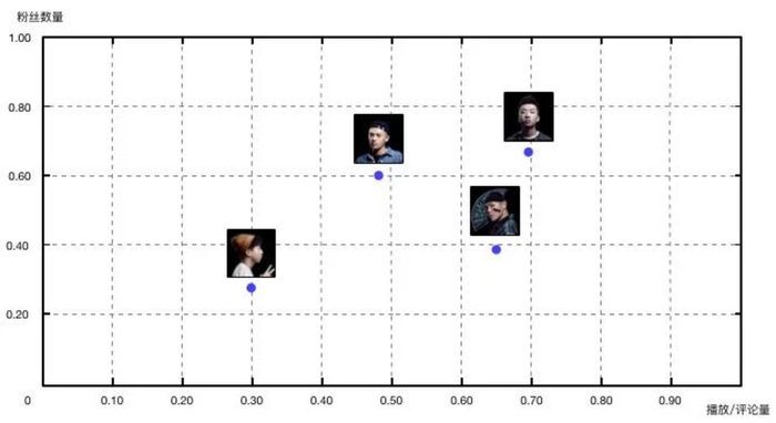 我们都知道,说唱实力、观众人气是决定一位说唱歌手的比赛成绩的关键因素,因此我们可以根据说唱歌手这两方面的表现制作特征,用数据体现歌手的综合实力: