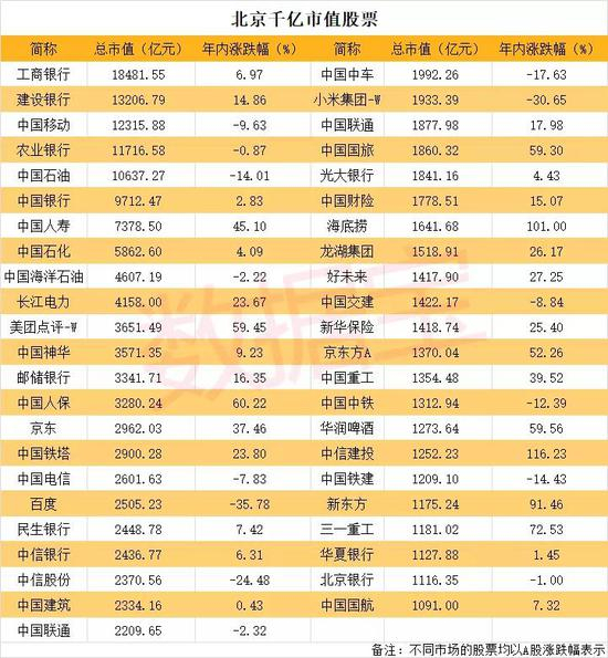 形成反差的是,在这段时间,北京、上海、广州等城市本地股的市值总和,增加并不明显,有的甚至出现明显下降。比如,北京本地股总市值缩水超过万亿元,其中工农中建四大行市值缩水近6000亿元,两桶油市值缩水超4000亿元。广州本地股市值下降幅度较大,则主要是中国恒大归属地被划分到深圳所致。