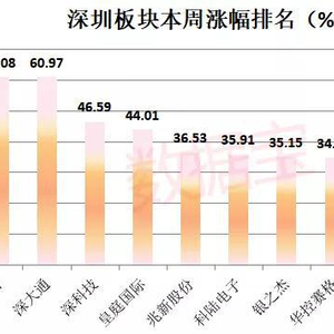 深圳本地股本周掀起暴涨潮。其中,深赛格、深大通两只个股连续5个涨停板,深科技、皇庭国际、兆新股份等20多只个股股涨幅超过20%,同洲电子、珈伟新能、达实智能等70多只个股涨幅超过10%。深圳板块A股本周市值暴增近3000亿元,总市值超过6万亿元。值得一提的是,A股、港股、美股的深圳本地股票市值(以上市公司注册地为口径统计),已经突破11万亿元大关。