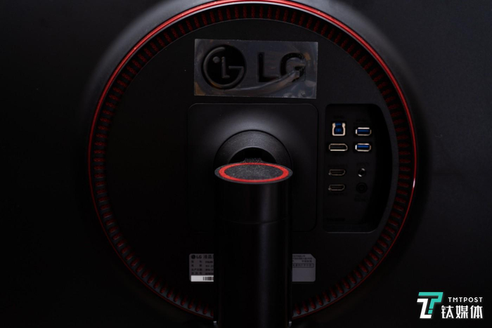 该显示器的接口全部位于背部,采用了LG一贯坚持的平行接口排列方式,对于这一个设计细节来说,同时带来了优势和弊端,其优势在于方便用户对接口进行拔插,而弊端则表现在更容易进灰以及线材会较大地占用显示器背部的空间。接口方面十分全面:DP1.4、HDMI2.0、USB3.0等等,值得一提的是该产品具备内置音箱功能,可以直接用3.5音频接口输入。