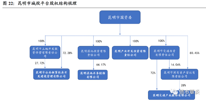 昆明市本级城投平台有5家,昆明滇池投资是云南省滇池流域水污染治理的唯一投融资主体及昆明市污水处理主体;其子公司昆明滇池水务为昆明市特许经营的污水处理主体,拥有自2011年起为期30年的昆明市污水处理特许经营权;昆明产业开发投资有限责任公司为产投平台,在昆明市旧厂改造、五华区、盘龙区等区域土地整理和民爆产品销售等业务上有垄断优势;昆明交产股份为昆明交投旗下重要产业板块,形成以高速公路收费为核心、公路衍生业务构成的“公路运营”板块,和以整车销售、物资贸易等为构成的“商贸流通”板块;昆明公租房为昆明市唯一一家公共租赁住房开发建设主体。昆明经开区唯一核心平台为昆明经济技术开发区投资开发集团,承担经开区内基础设施建设和国有资产经营;滇中新区重要的土地一级开发主体为昆明空港投资开发集团有限公司,负责空港经济区的土地开发。
