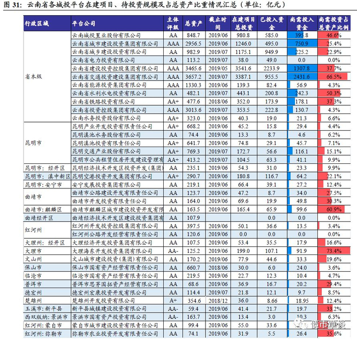 5、云南省各城投平台在建项目待投资规模及占总资产比重情况汇总