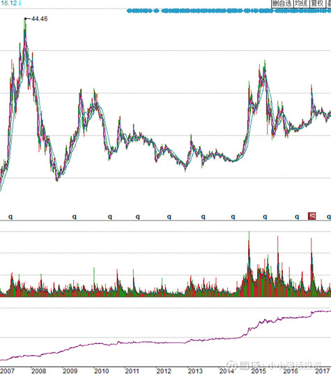 图2-5-5 吉林敖东(000623)2007年-2017年股价日K线走势图