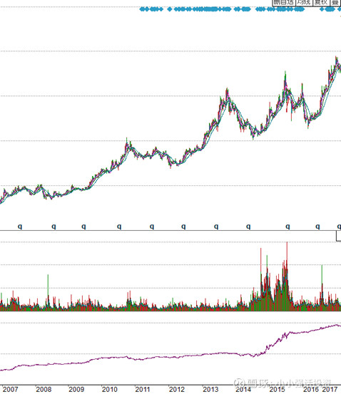 图2-5-4 云南白药(000538)2007年-2017年股价日K线走势图