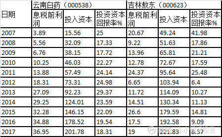 原标题:云南白药和吉林敖东投资资本回报率分析 来源:小小强话投资