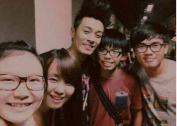 有网友爆料:周柏豪曾在社交媒体上发过与乱港青年头目黄之锋的合影。(中间为周柏豪、右二为黄之锋)↓