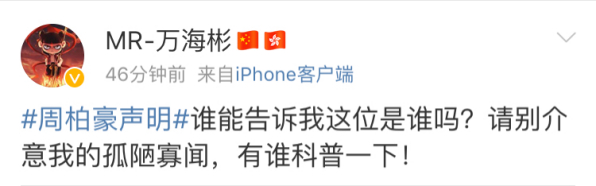 “周柏豪声明”热搜第一:从未支持“港独”,网友:周柏豪是谁?