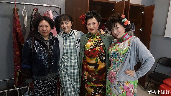 陶虹(右一)出演话剧《四世同堂》中的胖菊子
