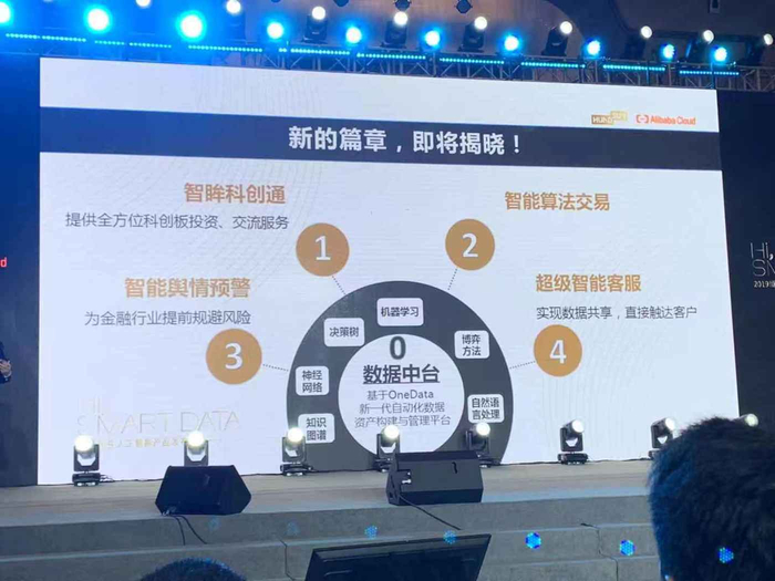 在本次发布会上,恒生电子还发布了四款基于恒生数据中台的人工智能产品:智眸科创通、智能算法交易、智能舆情预警和超级智能客服,这四款人工智能产品即基于数据中台上的前端应用。