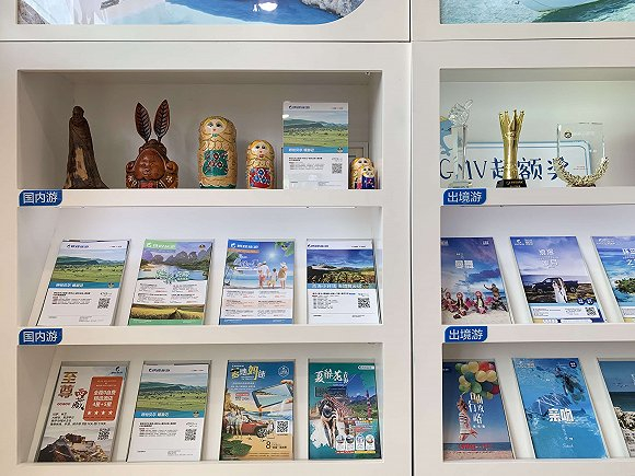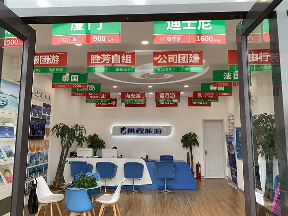 各家店面大同小异,四五十平米,接待台放上旅游产品宣传彩页,至少有一台电脑,两三个员工,简单装修。携程的装修算是当地最时髦的。