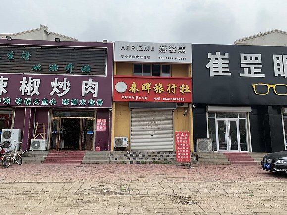胜芳镇的春晖旅行社,楼上是美容店。拍摄:郑萃颖