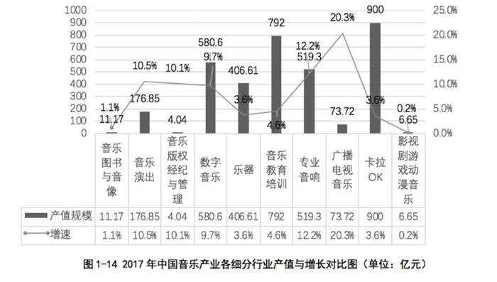 根据《2018年中国音乐产业报告》的数据显示,2017年,“音乐图书与音像“产值规模为11.17亿元,仅占总产值(3470.94亿元)的0.32%。如果把音乐图书一项刨除后,音像占比只会更低。