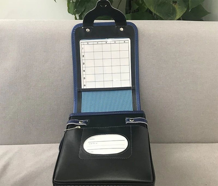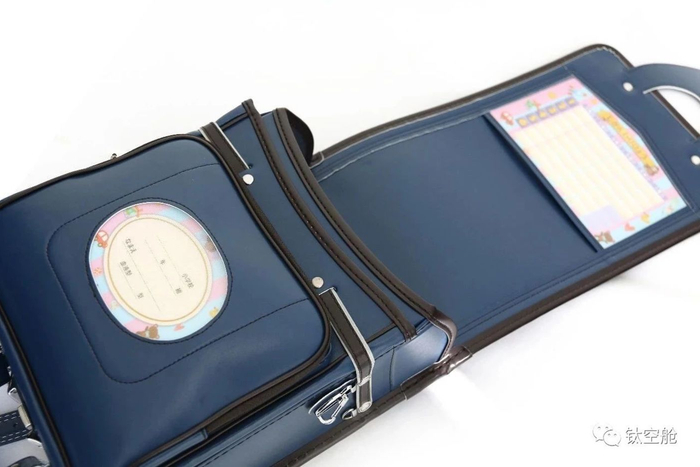 翻开背包盖,你会发现两扇“橱窗”,上方放置课程表,下方写上小朋友的名字和班级。真是实用又贴心哇!
