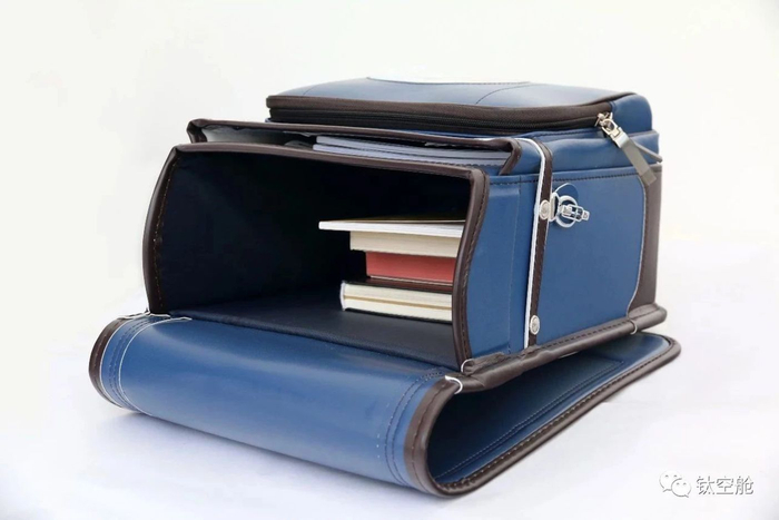 谷村鞄不是传统的拉链收纳,而是底部有一个自动锁扣,单手就能把书包锁上,超级方便。