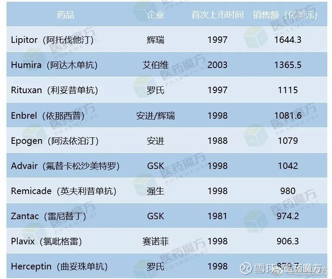 阿托伐他汀适用于杂合子家族或非家族性高胆固醇血症和混合性高脂血症,也适用于纯合子高胆固醇血症,是全球首个年销售额突破100亿美元的超级重磅品种,开启了新药研发史上的小分子药物销售神话。自1997年初获批上市至2018年年底,累计销售收入达到1644.3亿美元,是目前累计销售额最高的药物。