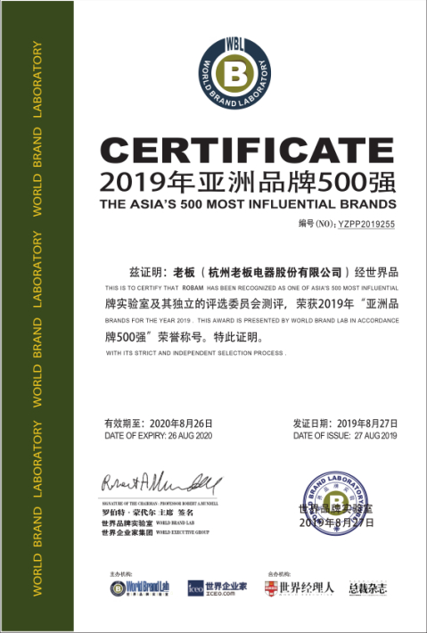 从2006年开始,《亚洲品牌500强》每年发布一次,今年是世界品牌实验室(World Brand Lab)第14次对亚洲品牌的影响力进行的测评,也是老板电器第14次摘得这一殊荣。这是《亚洲品牌500强》对老板电器行业领导地位和高端品牌模式的认可。
