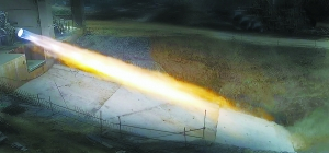 相似的火焰容易让人联想起去年10月的一天,在中国大地深处的酒泉发射中心,一枚红白双色的固体燃料火箭腾空而起,直奔太空而去。