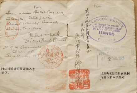 护照记录,1925年12月2日,经过长途跋涉的任而为回到了法国马赛。