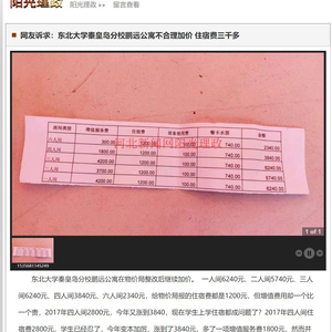 东北大学秦皇岛分校回应宿舍价格问题:配合调查组