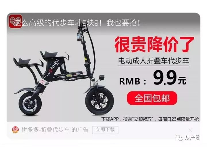 说什么高级代步车只要9.9元全国包邮,诱导你下载,我他么打开钱包,准备来100块钱儿的。