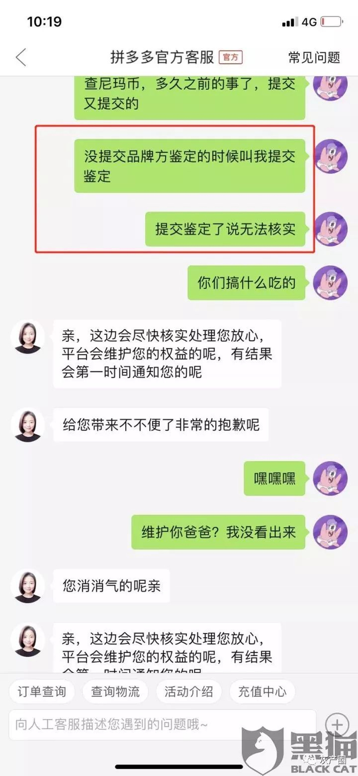 什么鬼?即便是做过鉴定,拼夕夕也不会承认产品鉴定的真实性的,这个套路简直是太牛了,而且推脱的手段着实高超,直接把消费者推向当地的行政部门,让消费者自己去政府维权。
