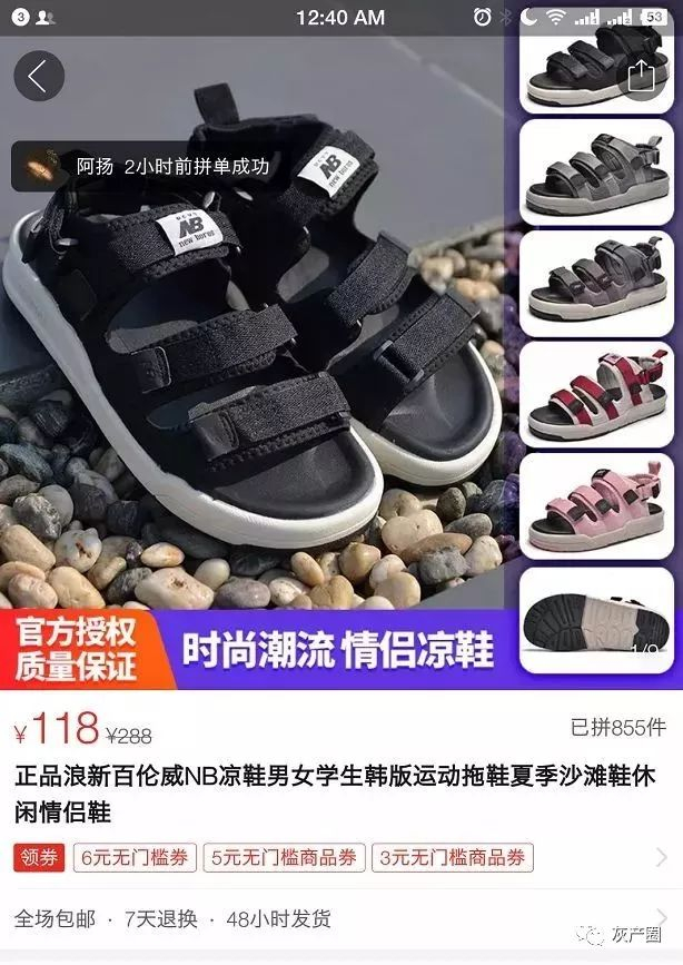 于是,我来到了拼夕夕大牌专区,看上了一双官方授权,质量保证的新百伦凉鞋: