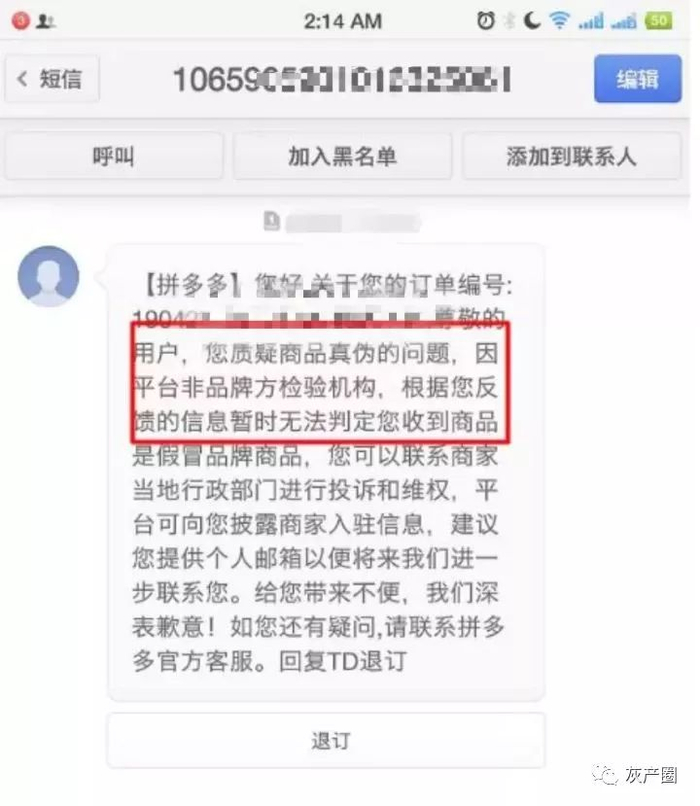 这次拼夕夕反应非常及时,也就过了一个小时,电话就过来了,电话里的小妹妹非常客气,连声道歉,然后解释,大致意思是:都是商家的问题,我们把商家的信息全给你,你去对付他吧,我们配合