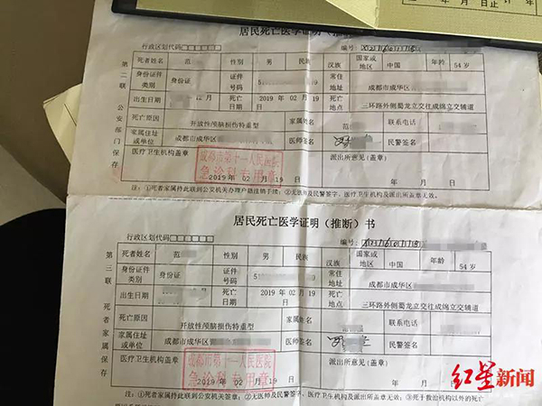 她提供的《居民死亡医学证明(推断)书》显示,范师傅的死亡原因是开放性颅脑损伤特重型。